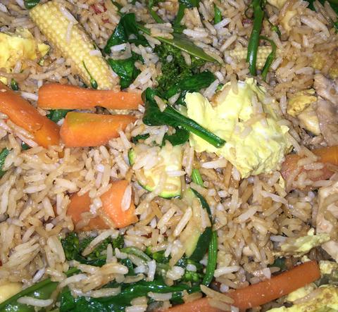 | 100 gram | frozen peas and corn or fresh baby corn, chopped | |