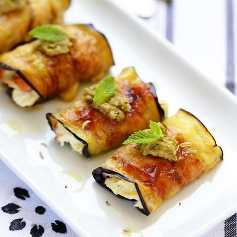 Roulés d'aubergines au jambon